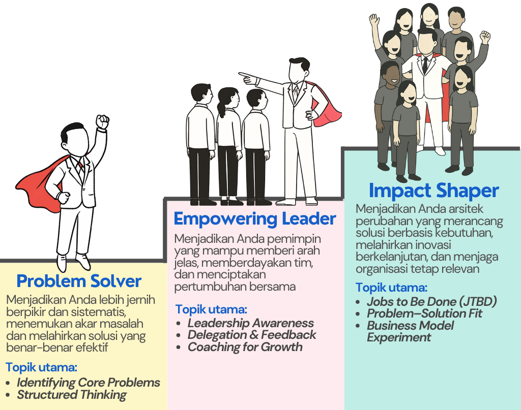 - Impact Shaper: Fokus pada inovasi berbasis kebutuhan user & strategi organisasi.